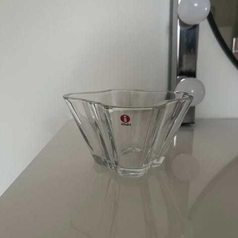 Iittalan lasikulho ja violetti/kirkas lasikauha