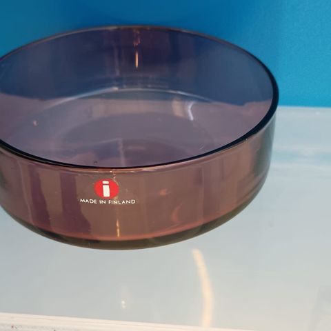 Iittalan violetti i-sarjan jälkiruokakulho i-307, jonka on suunnitellut Timo Sarpaneva vuonna 1956.