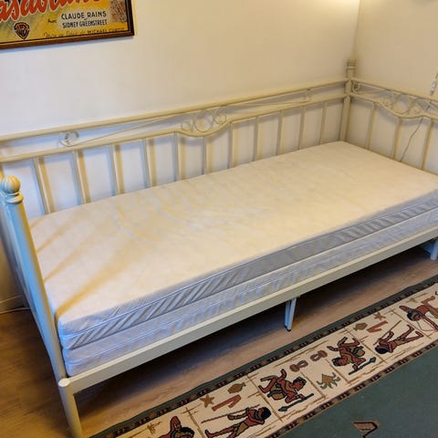Pyöreä vuodesohva valkoisella verhoilulla. Sopii tilaan, jossa tarvitaan sekä istuin- että makuutilaa. Petari voidaan avata kokonaisen ympyrän muotoiseksi.