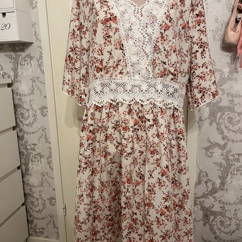 Sinivalkoinen kukkamekko satiinia
