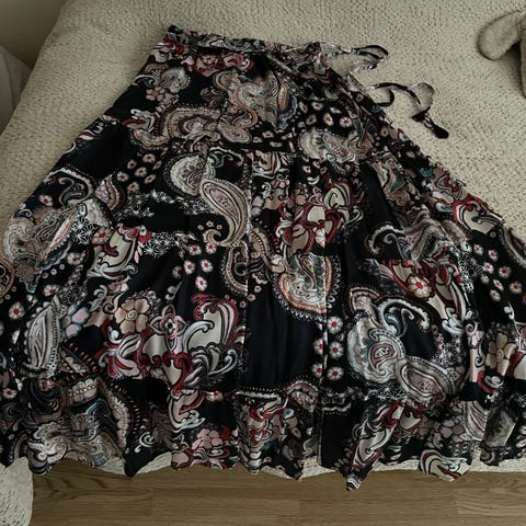 Söpö hame violetilla yksityiskohdilla. Koko:1(s). Hinta: 27 euro posteineen