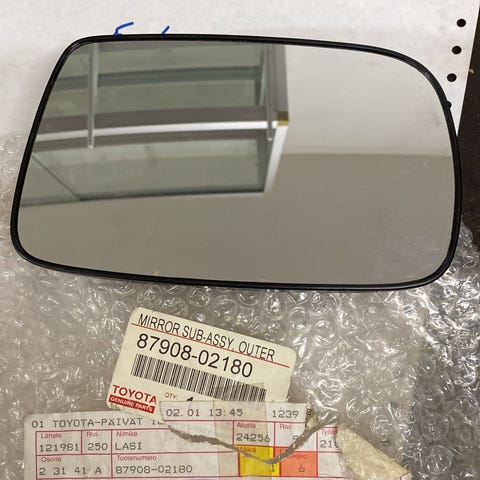 Myydään Toyotan uusi ja alkuperäinen osa, osanumero 87909-05370 ("MIRROR SUB-ASSY, LH, Sivupeilin lasi vasen). Sopivuus: