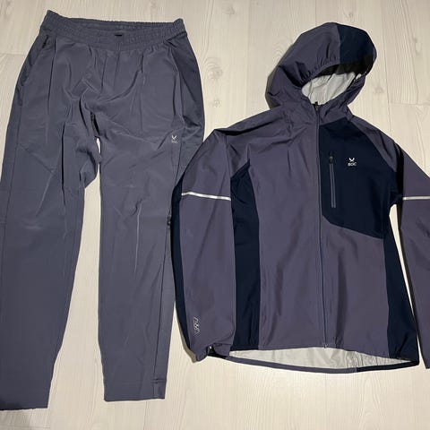 Berghausin siniharmaa Gore Tex kuoritakki, arvioitu koko XS (takissa ilmoitettu kooksi 8). Kaksi vetoketjullista taskuja. Takin vetoketju kaksisuuntainen. Hupussa, helmassa ja hihansuissa kiristykset. Takaa hieman pienempi.