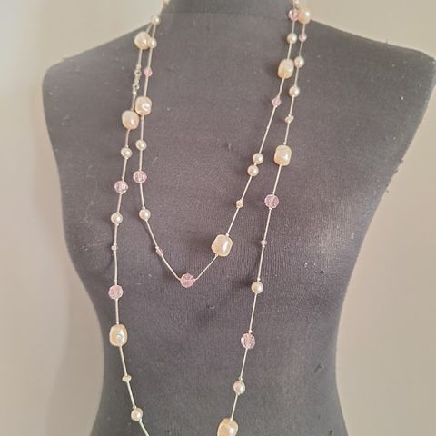 - Valkoisia pienempiä helmiä, kirkkaat lasihelmet, harmaat pienet helmet, isot opaalit helmet, hopeanvärinen ketju