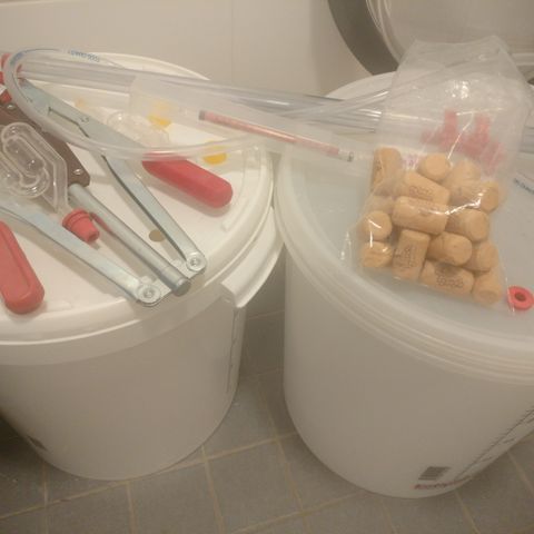 2 käymisastiaa joista toisesta ainakin kansi rikki