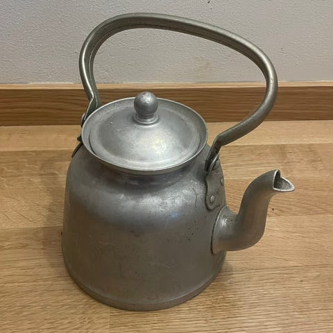 Pannu kuparia, koristeet ja alunen messinkiä.