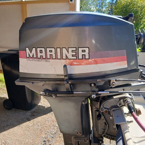 Extrapitkä rikinen (57 cm) perämoottori. Sähkö ja käsikäynnistys, ei trimmiä. Kaukohallintalaitteet saa mukaan. Koekäynnistys pytyssä onnistuu. Vaihtokin voi ehdotella