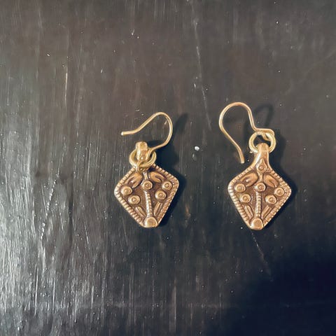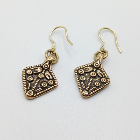 Pronssiset Kalevala korun "Aarrekääty" -korvakorut klipsikiinnityksellä.