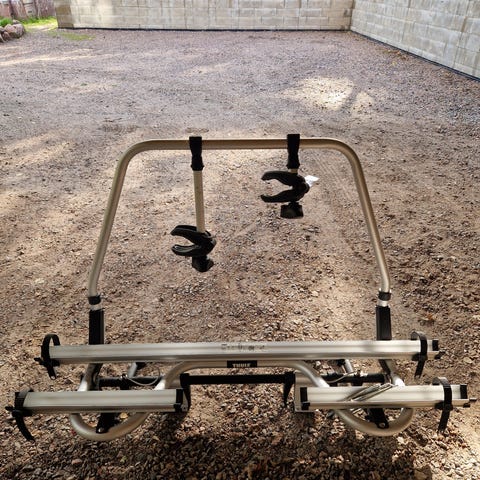 Taattua Thule laatua, ei irtoa ajossa teline eikä pyörät eikä tarvitse kiroilla pyöriä kiinnittäessä eikä irroittaessa.