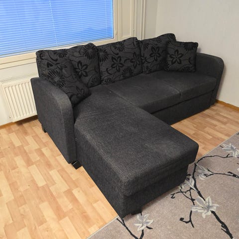 Hyvä kuntoinen, uutena ostettu vuodesohva. Vuode ollut vähäisessä käytössä vierashuoneessa. Vuode osassa tukeva puusäleikkö pohja.