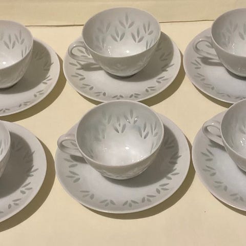 Arabia riisiposliini mokkakupit 12 kpl – Friedl Kjellbergin design, lehtikuvio