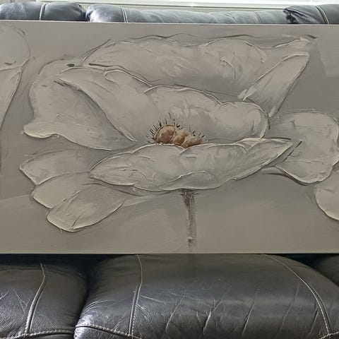 Mahtavan kokoinen ja näyttävä, ehjä ja tuoksuton, harmaasävyinen sisustustaulu 100x160cm. Akryyliväreillä kankaalle, kaunis elävä struktuuri, takana valmiina tukevat ripustuslenkit ja ripustuslankakin voidaan laittaa valmiiksi.