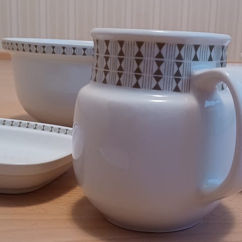 Siistit ehjät kulhot. Suuremman korkeus on 12 cm ja halkaisija 23,5 cm , matelamman korkeus on 8,5 cm ja halkaisija 22 cm. Erikseen iso 25 e