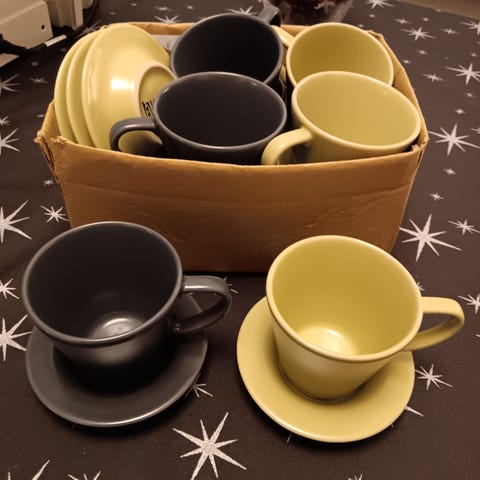 5 vihreää kahvikuppia. Ikea. Pieniä käytönjälkiä.