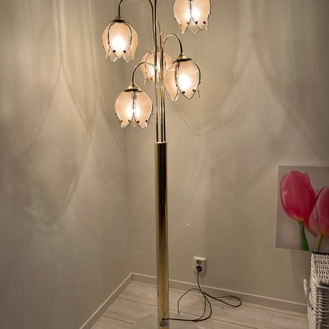 Kuvassa oleva toimiva valaisin. Kaksivaiheinen katkaisin, marmorijalka. Yksi kuvun lasi puuttuu.