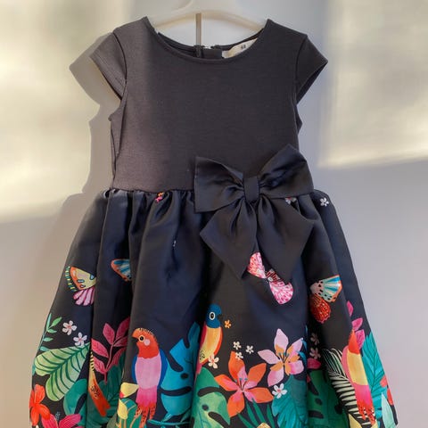 Myydään tummansininen juhlamekko, oli meillä kovassa käytössä. Hieman tylli repsottaa, saa ommeltua kiinni jos häiritsee. Pesu jää ostajalle.