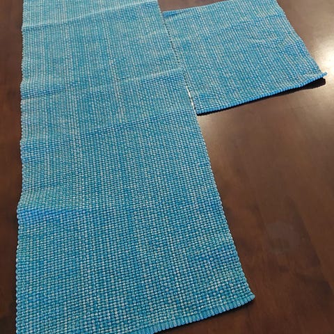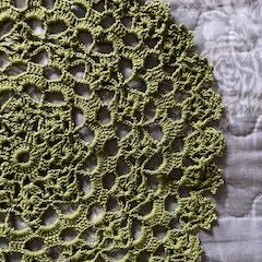 Kaksi Novitan cotton soft puuvillalangasta virkattua liinaa. Halkaisija noin 26 cm.