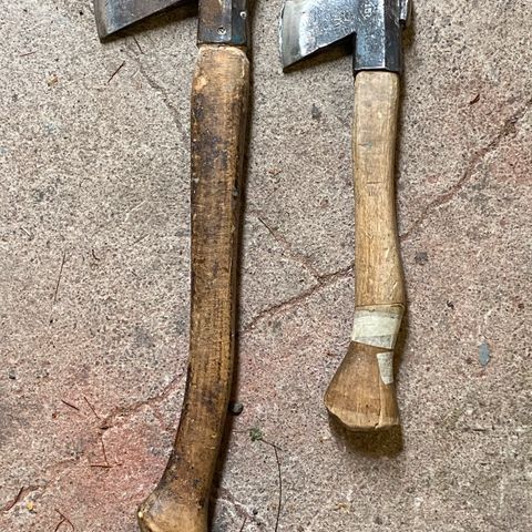 Myydään kaksi kirvestä. Vasemmanpuoleinen on fiskarsin kirves. Sen hinta 25€ ja oikeanpuoleinen kirves hinta 10€. Molemmat yhteensä 30€.