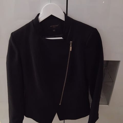 Hyväkuntoinen ja ehjä musta lyhyt naisten takki. Kangas paksuhkoa collegen kaltaista. Sopii hyvin välikausitakiksi, ei kuitenkaan kestä vettä. Käytetty muutamia kertoja. Edessä olevien nappien lähellä ja hihan resoreissa hieman nukkaa. Kaikki napit kiinni ja tallella.