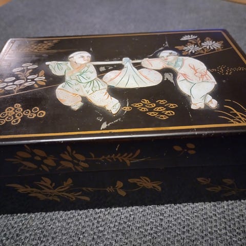 Käsintehty pieni korurasia, jossa on kaunis maalaus kannessa. Rasia on valmistettu puusta ja sen sisäosa on kirkkaanpunainen. Sopii korujen tai pienten esineiden säilytykseen. Postitus (9e) tai haku. Kulkee metrolla keskustaan saakka.