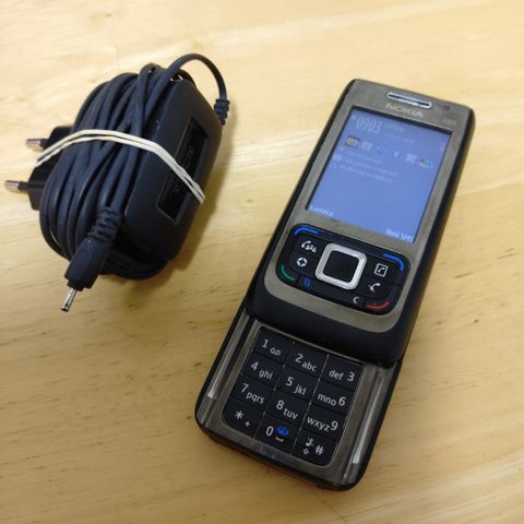 Siisti ja asiallinen Nokia E65 kännykkä. Mukaan tulee laturi ja puhelimen sisällä on tietysti toimiva akku.