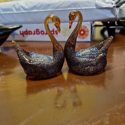 Muurlan joutsen ja kaksi muuta lasista joutsenta