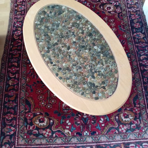 Myydään kuvassa oleva sohvapöytä. Muutama jälki/kulumaa kannessa (näkyy kuvissa).