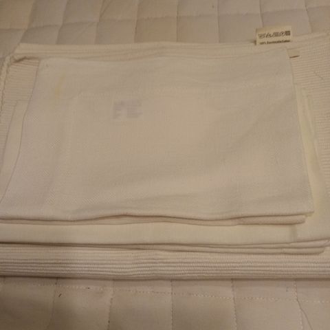 Setti 10kpl valkoiset linen 100% pestä30 kor.38cm lev.47cm valeavihreat kor.45 lev.45.pestä 30