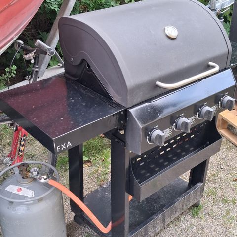Nelipolttiminen, teknisesti uudenveroinen grilli pietso-/pilottiliekkisytytyksellä. Uudet teräsemaliset lämmönjakolevyt, uusi rosteri-ritilä, uusi rasvapelti, uusi letku & kierre`paineventtiili mittarilla. Hinta ilman kaasupulloa 155e ja 11kg kaasupulloineen 245e.