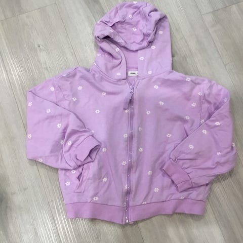 Liila collegehuppari. Pieni (ei läpi) reikä hupun takana (kuva).