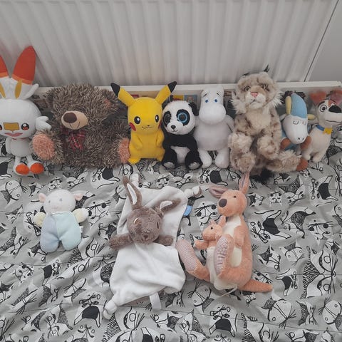 Myydään erilaisia eläinpehmoja.