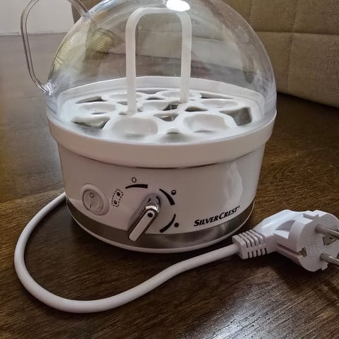 Siitäpä tollanen vanha ja edelleen toimiva osa Siemensin kodinkonehistoriaa. Muutaku vettä pohjalle ja anna höyryn keittää munat sopivan kypsiksi. Muutaku piuha seinään ja menoksi. Mukana tulevan munapiikin ja mittakulhon avulla voit nopeuttaa kypsymistä tai jopa tyhjentää munankuoret rikkomatta niitä jos haluat tehdä mignon suklaa munia tai antaa lapsille koristeluideoita pääsiäiseks tai muuten vaan.