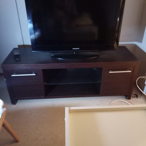 Johdot ja laitteita mahtuu myös hyllyn taakse.