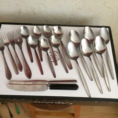 Myyn tilaajalahjana saadut, 40 € arvoiset ja täysin käyttämättömät ruokailuvälineet: