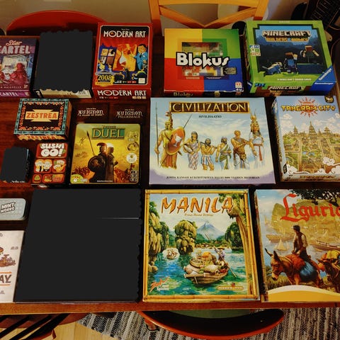Tarjolla lautapelejä yhdessä pelailuun. Nouto onnistuu Tampereella (Peltolammi), samoin postitus (myös ToriDiilinä). Tietoa peleistä löydät esim. www.boardgamegeek.com -sivustolta. Jos lautapelit kiinnostavat, katsohan muutkin ilmoitukseni.