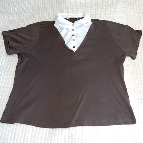 Merci Collection merkkinen tummanpunainen/viininpunainen kauluspaita kultaisilla yksityiskohdilla. Koko L