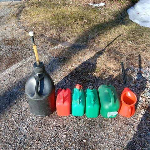 Ollut itsellä varakanisterina perätuupparille. Mukana noin 2.5 litraa 2 tahtibensaa jonka ostaja saa kaupanpäälle.