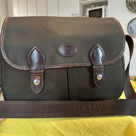 Longchampin ruskean ja khakin sävyinen shoulder bag pidennettävällä remmillä. Tämä ostettu 2000-luvun alussa. Käytetty vähän, kunto loistava. Takapuolella näkyy haalealla pienet tahrat, huomiotu hinnassa. Sijainti ison omenan vieressä, postitus onnistuu tietty myös. 😊