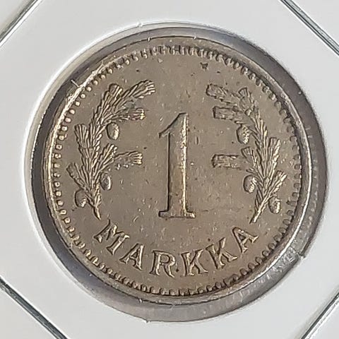 Kuvien 91-vuotias kolikko myydään hintaan 1€. Lähetys kirjeessä 4€ lisähintaan. Samalla 4€ kirjemaksulla tulee useampi kohteeni (500g raja!).