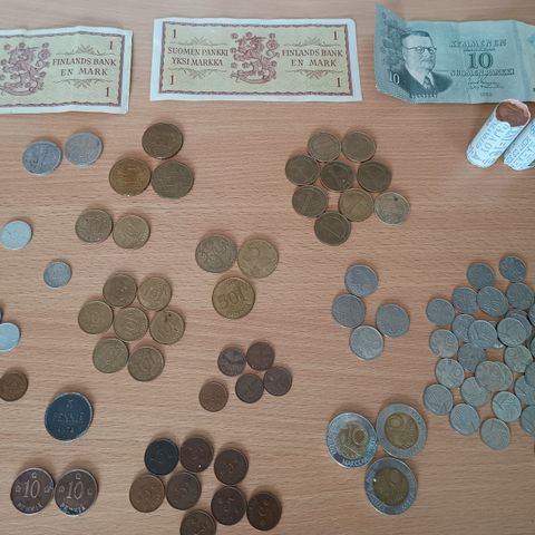 Vintage metallinen raharenki / kolikkorenki markka-ajan kolikoille.