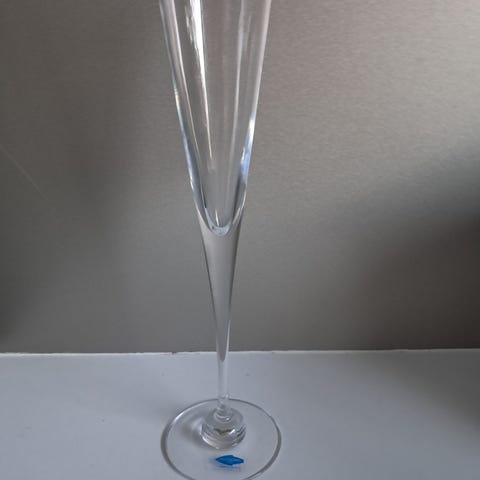 Heikki Orvolan Nuutajärvelle suunnittelemat Aurora sarjan kuohuviinilasit. Korkeus 265 mm .