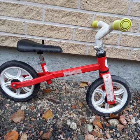 Lasten puinen ajopeli, istuimen korkeus säädettävissä 30/35/40 cm korkeuteen. Ilmatäytteiset renkaat.