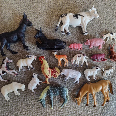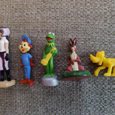 Sekalaisia muovisia figuureja ainakin 70- ja 80-luvuilta.