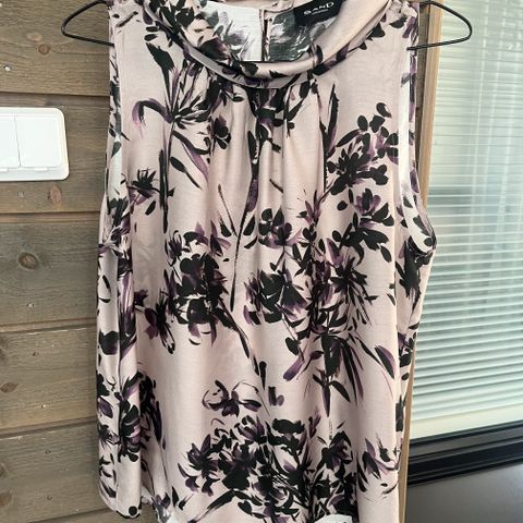 Sand Copenhagen toppi, koko S. Mitat: kai-kai 54cm ja pituus 64cm. Pohjaväri vaaleanharmaa. Materiaali 100% viskoosia, ohutta ja läpikuultavaa. Kuvion ansiosta ei oikein näy kunnolla läpi. Saa laittaa sen alle alustopin. Selän puolella keskellä pientä langanvetoa. Ei oikein huomaa kuvion ansiosta ( ks. kuvat) ja tämä on huomioitu hinnassa. Hinta 45e ( ovh 179e)