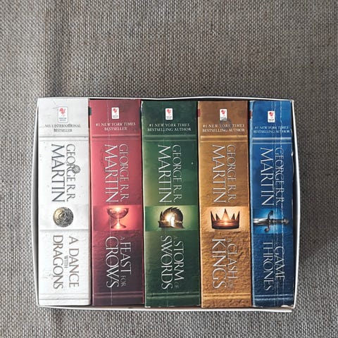 Tästä halvalla ne kuuluisat Game of Thrones kirjat, jos englanti taittuu tai vaikkapa hyllyyn koristeeksi.