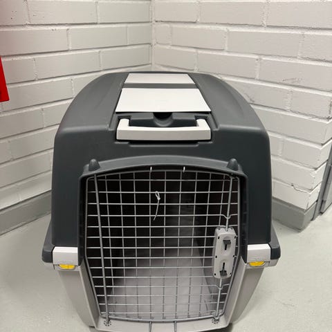 Kerran lennetty Portugalista. Ostettu 7kg koiralle. Kork. 55 cm, lev. 50 cm, pit. 70 cm. Lentoyhtiöiden hyväksymä.