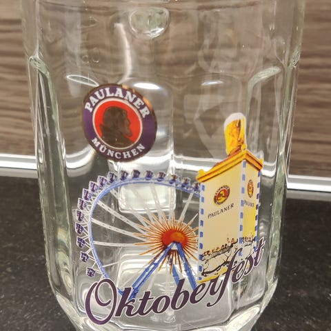 Kuvan mukainen lasi. Korkeus 24 cm ja suun halkaisija 7,5 cm. HB.