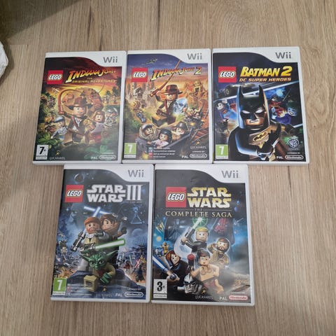 Myydään pakettina hyväkuntoiset Nintendo Wii Lego-pelit: Star Wars 3, The Lord of The rings, Batman DC super Heroes, Indiana Jones The Original Adventures , Pirates Caribbean The video game, Batman The video game.