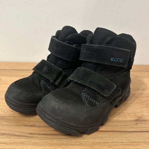 Paljon tykätty ja käytettyinä ja ECCO - merkkiset lasten talvikengät. Kevyet ja kestävät saappaat. Käytön jälkeä on. Käyttökelpoiset edelleen vaikka päiväkoti-käyttöön. Helppo ja nopea pukea jalkaan. Tarrakiinnitys. Pohjassa vielä reilusti kulutuspintaa jäljellä, sisältä vuoressa villasukasta jäänyttä nukkaa, itse vuori ei ole kulunut puhki. Pohjallisen sisämitta kuvassa. Koko 26.