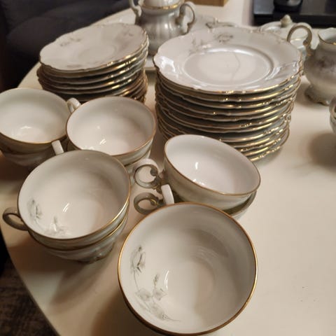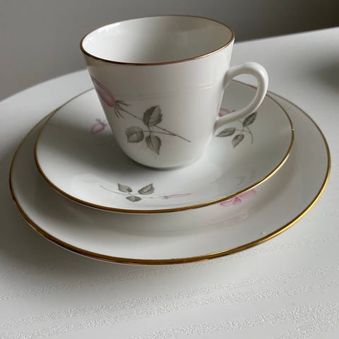 Rörstrand Primeur kahvikupit, asettimet ja leivoslautaset